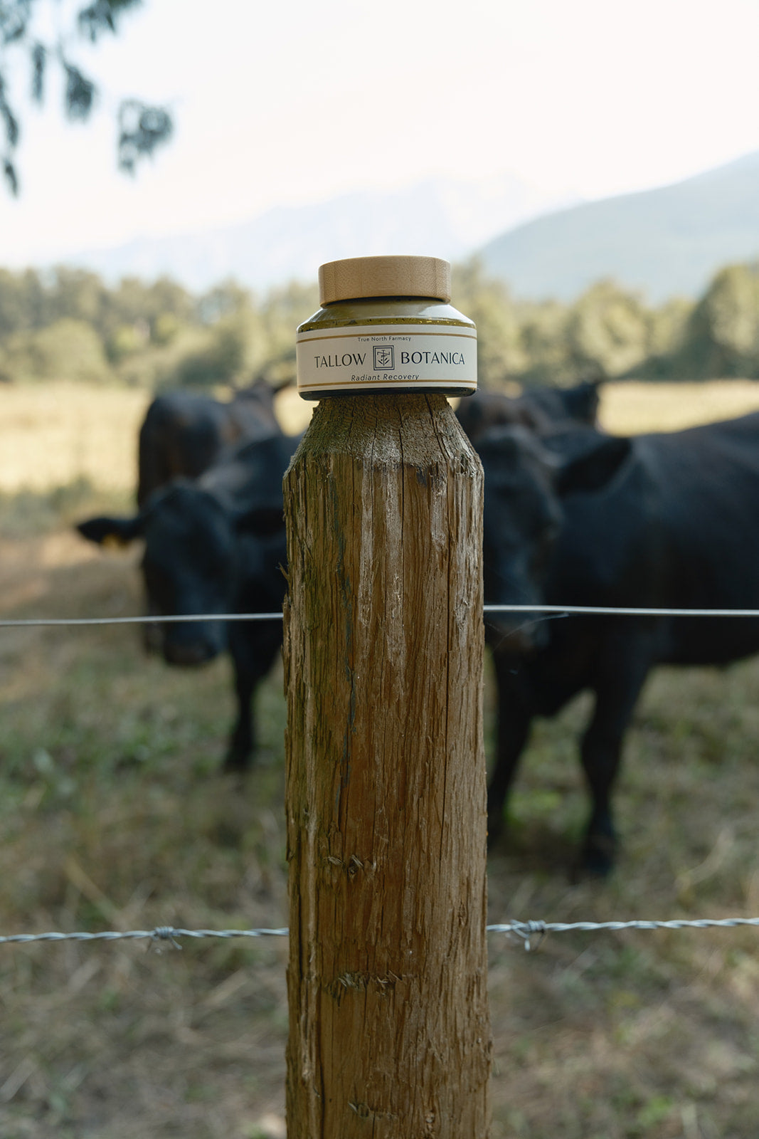 Nestled in the pristine Pemberton Meadows on a certified organic farm, botanicals are cultivated and wildcrafted by hand with reverence, in consort with biodynamic and regenerative principles. Animal based ingredients are all grass fed & finished, hormone free, and living amongst other animals in a lovely open pasture.